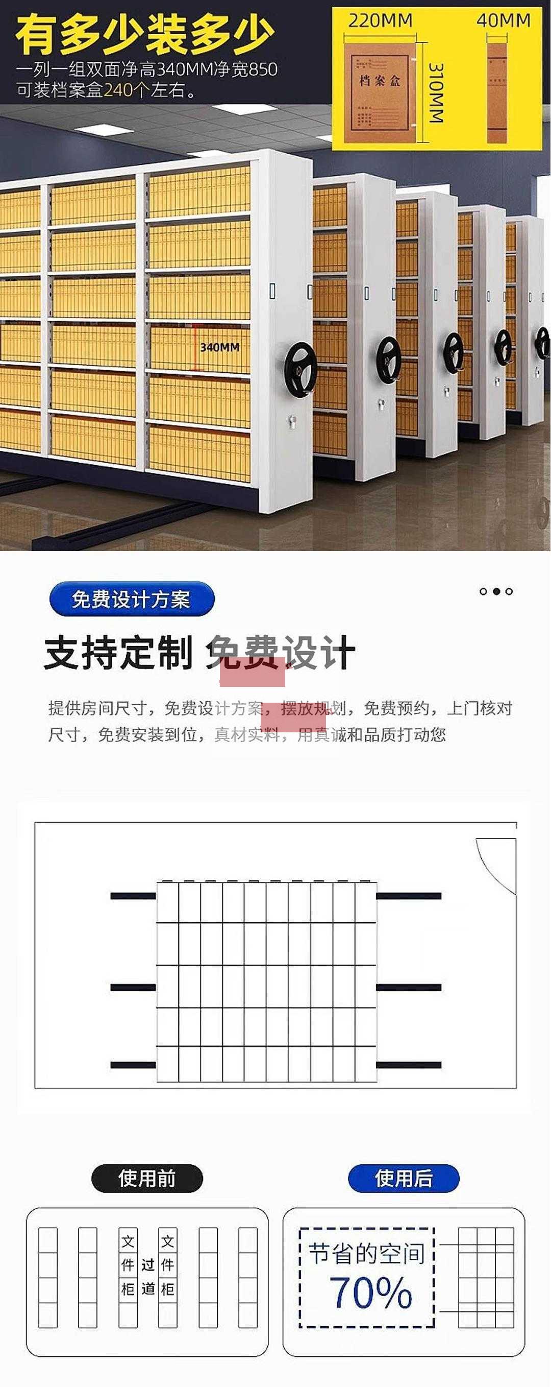 传统库房为了方便叉车或人通过,通道至少留80cm-1米宽,顶部空间基本闲置。数据显示,固定货架的有效利用率通常只有38%。但更严重的是管理成本——靠脑子记位置、靠人工翻找,不仅效率低,中国档案学会去年的数据显示,因挤压造成的物资损坏率高达1.2%。而改用密集架后,这个数字能降到几乎为零。